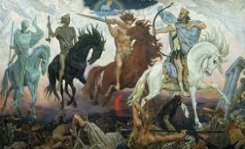 The events begin in chapter six with the opening of the seven seals. With the opening of the first four seals, the horsemen of the apocalypse emerge. The horsemen of the apocalypse are stopped by angels in chapter seven.
